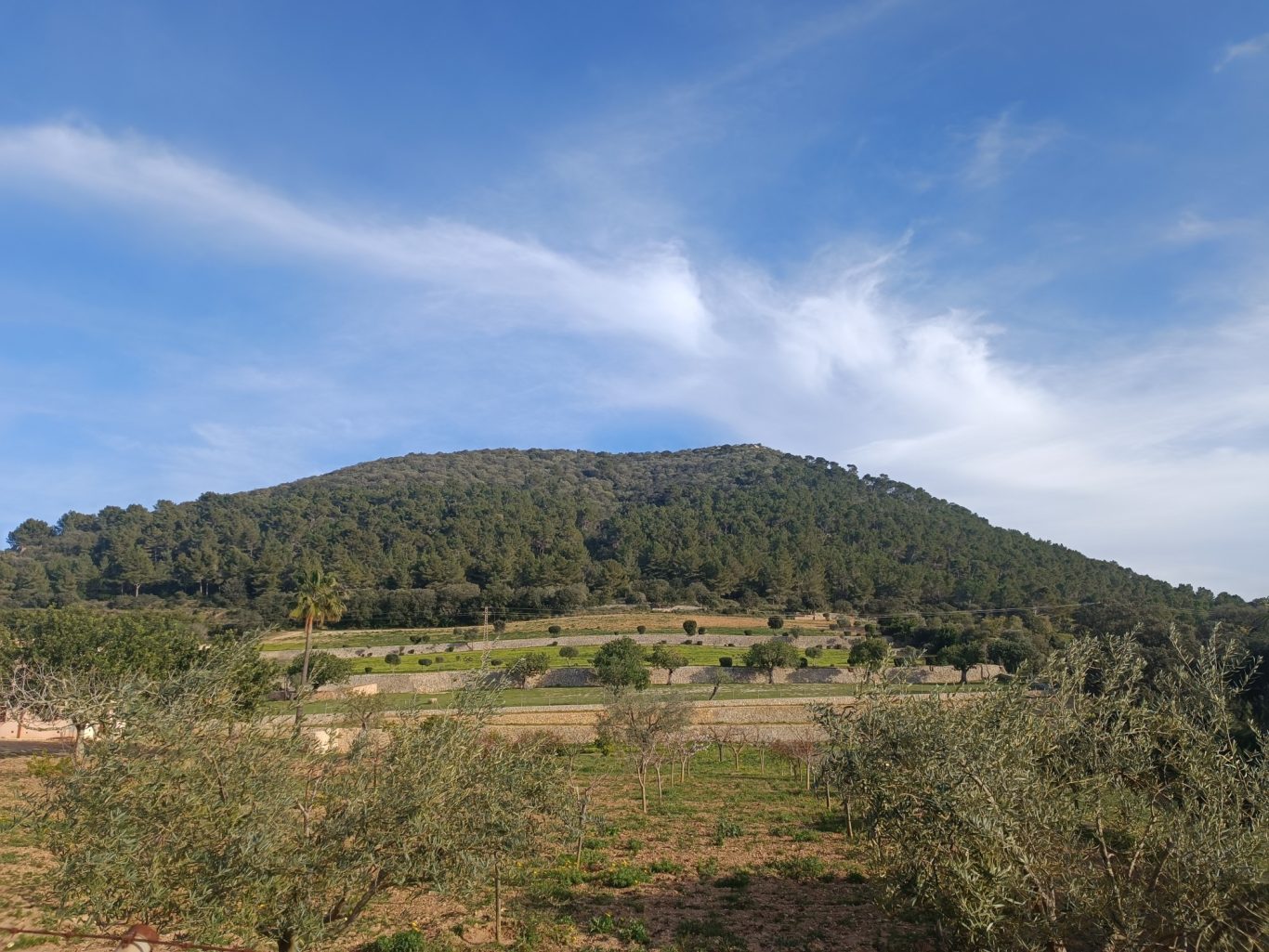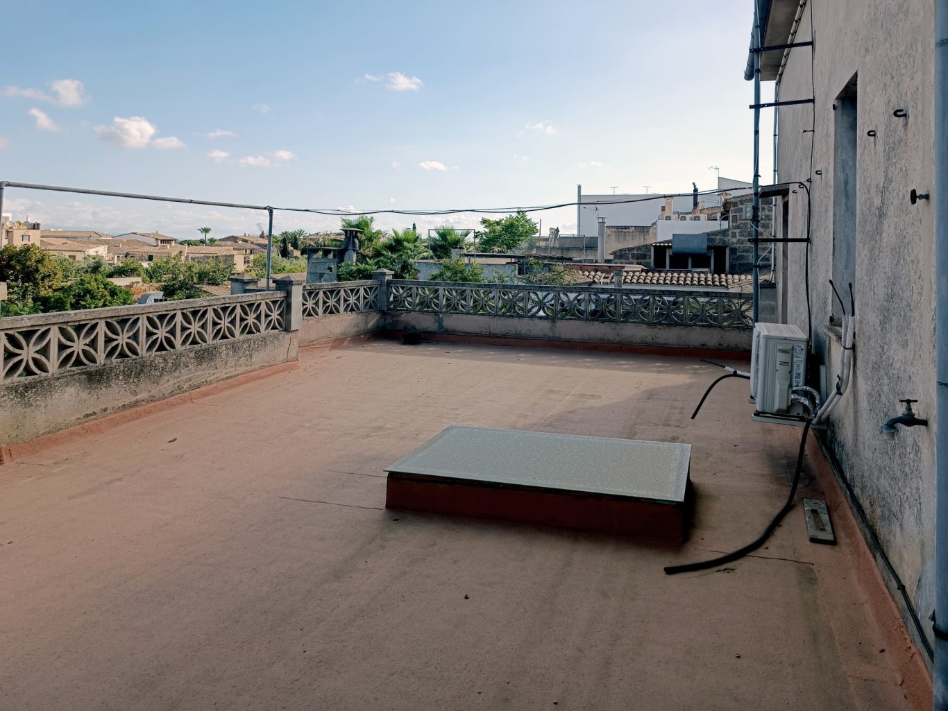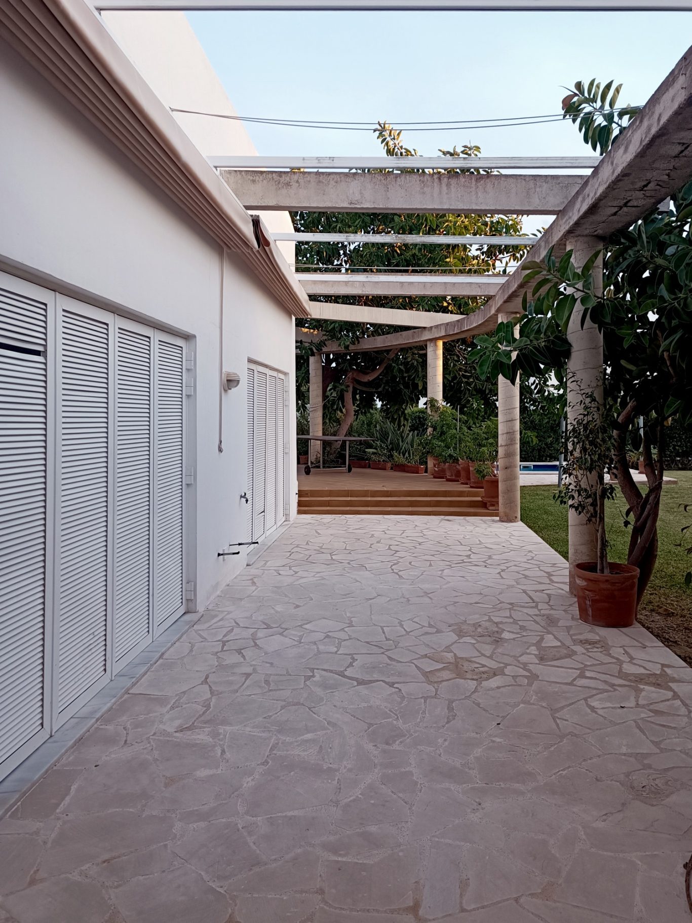 Se mejora la accesibilidad y la comunicación del espacio público de Son Romeguera entre la zona situada en la cota inferior (aparcamiento) y la copa superior (la plaza). Para ello se construye una escalera que genera un paso directo y se cambia el pavimento de la rampa por uno de tierra compactada estabilizada. También se aprovecha para recuperar el jardín de la rampa plantando vegetación de bajo consumo hídrico que además se regará por gravedad con el agua del aljibe de la plaza.