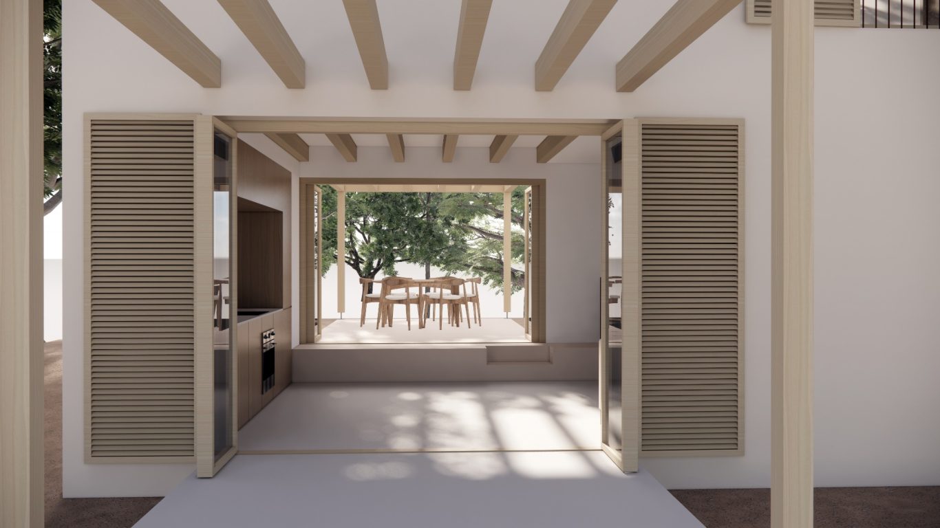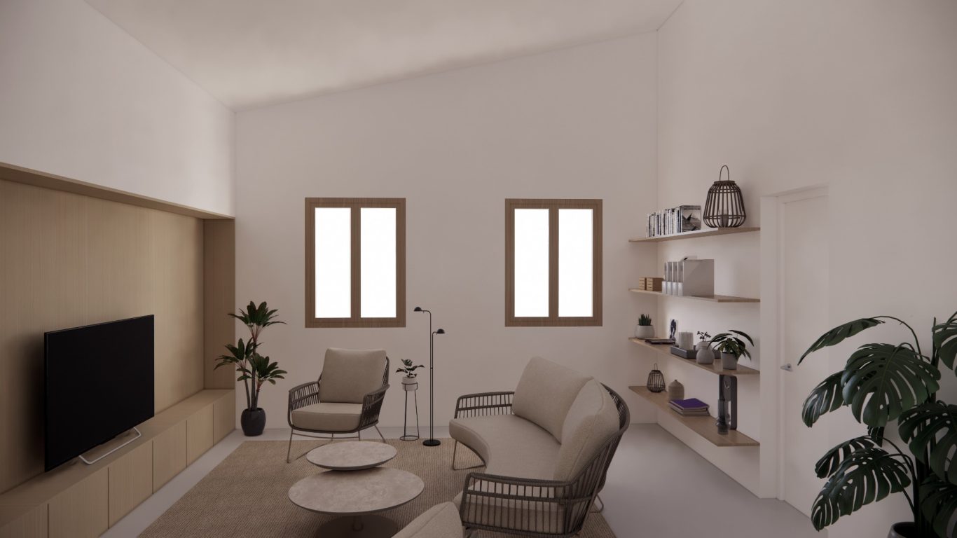 La reforma d'aquest habitatge comença enderrocant part de la sala amb l'objectiu de tenir un pati més gran i una millor relació entre l'espai interior i exterior. La nova distribució resitua la sala a la zona més fosca i el menjador a la zona amb més llum i més pròxim a la cuina. També ses millora l'eficiència energètica de l'habitatge amb aïllament tèrmic a les façanes i cobertes, unes fusteries amb vidres baix emissius i la instal·lació de plaques fotovoltaiques a la coberta inclinada.