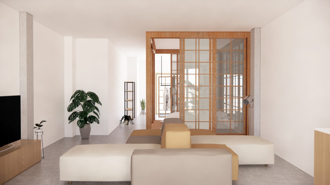 La reforma té com a objectiu crear un espai unitari molt flexible per aconseguir diferents distribucions només canviant els mobles. Els únics espais tancants són la dutxa i l'inodor, no obstant això, la dutxa té molta llum natural i está molt present en tot l'habitatge. D'aquesta manera es pot gaudir d'un habitatge flexible, que dona opcions per graduar la intimitat tant amb l'exterior com amb l'interior i que convida a explorar una habitabilitat en constant moviment.