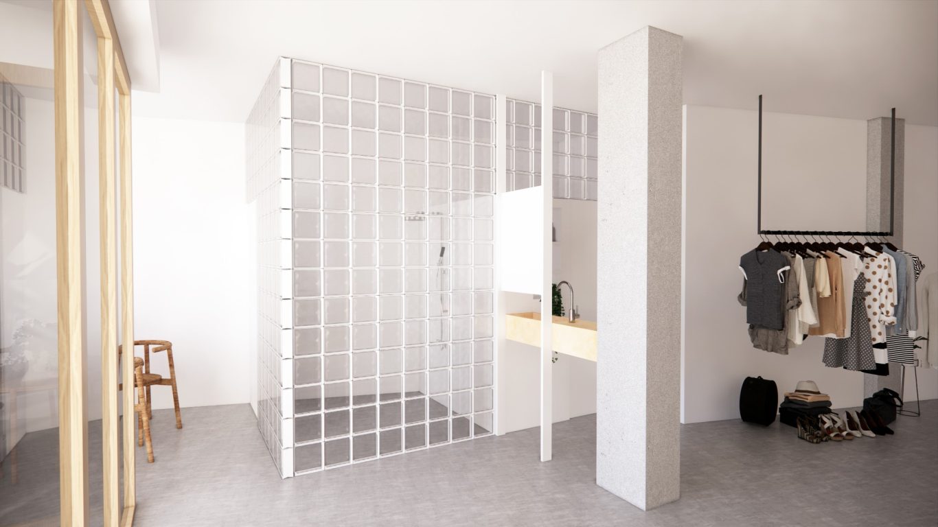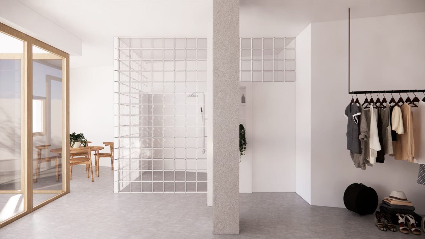La reforma de tiene como objetivo crear un espacio unitario muy flexible para conseguir diferentes distribuciones tan solo cambiando los muebles. Los únicos espacios cerrados son la ducha y el inodoro, no obstante, la ducha tiene mucha luz natural y está muy presente en toda la vivienda. De esta manera se puede disfrutar de una vivienda flexible, que da opciones para graduar la intimidad tanto con el exterior como con el interior e invita explorar una habitabilidad en constante movimiento.