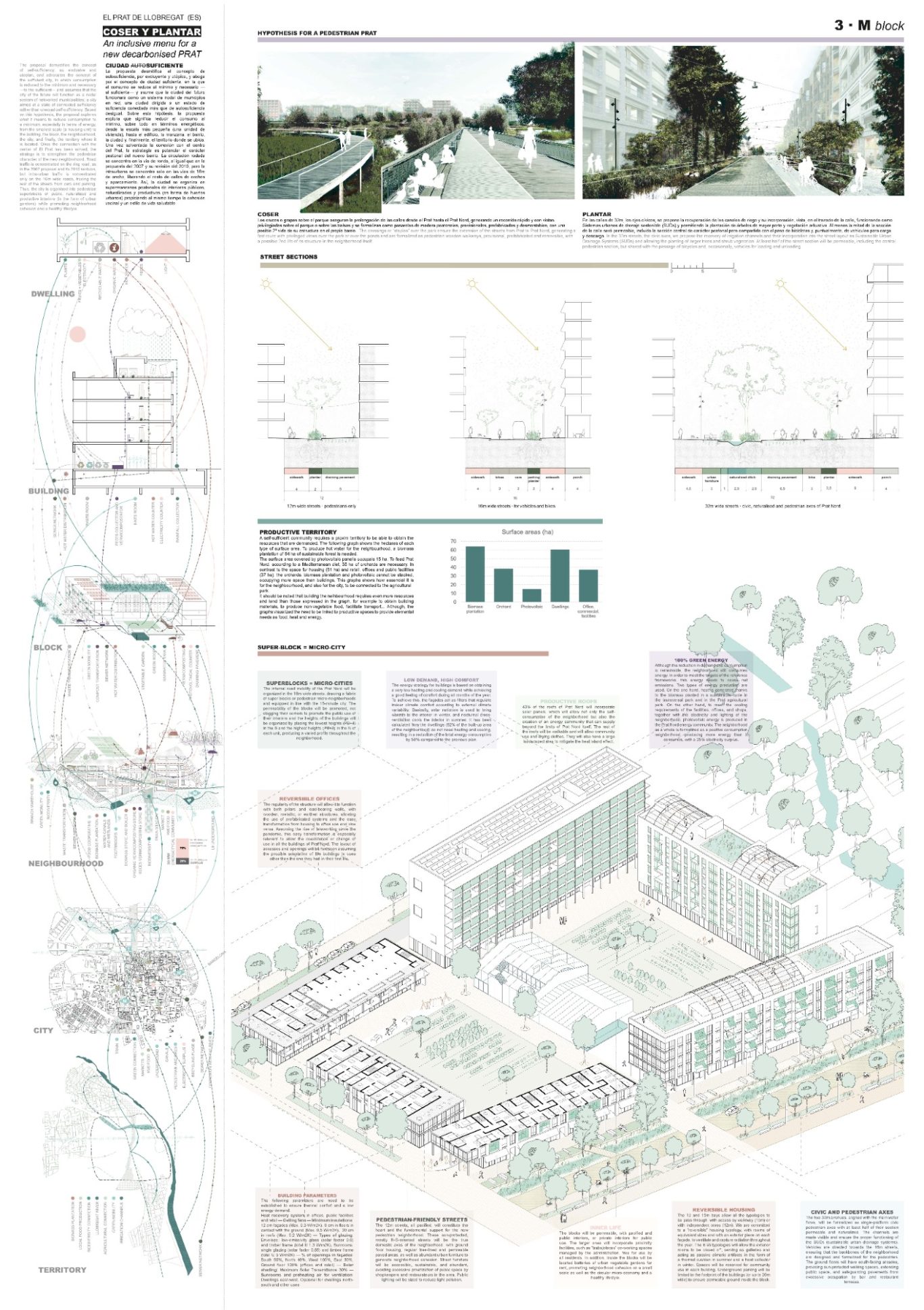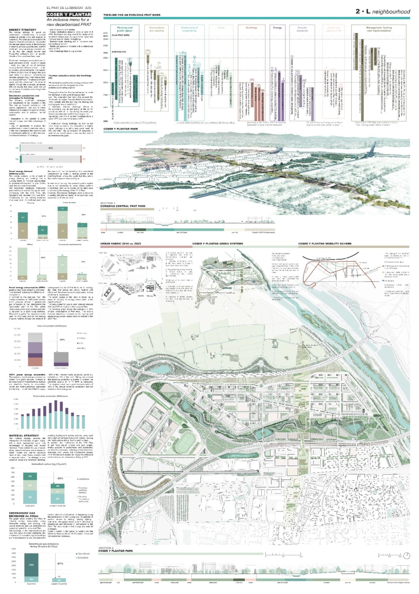 Propuesta para convertir al Prat en una ciudad inclusiva y sostenible mediante un conjunto de actuaciones que se plasmadas en el menú para la descarbonización del Prat. Dividido en 9 grandes bloques, el menú asegura que el futuro barrio se ajuste a los parámetros de sostenibilidad y justicia social, y además que sirva para establecer nuevos objetivos que lo conviertan en una ciudad habitable para el ciudadano del futuro.
