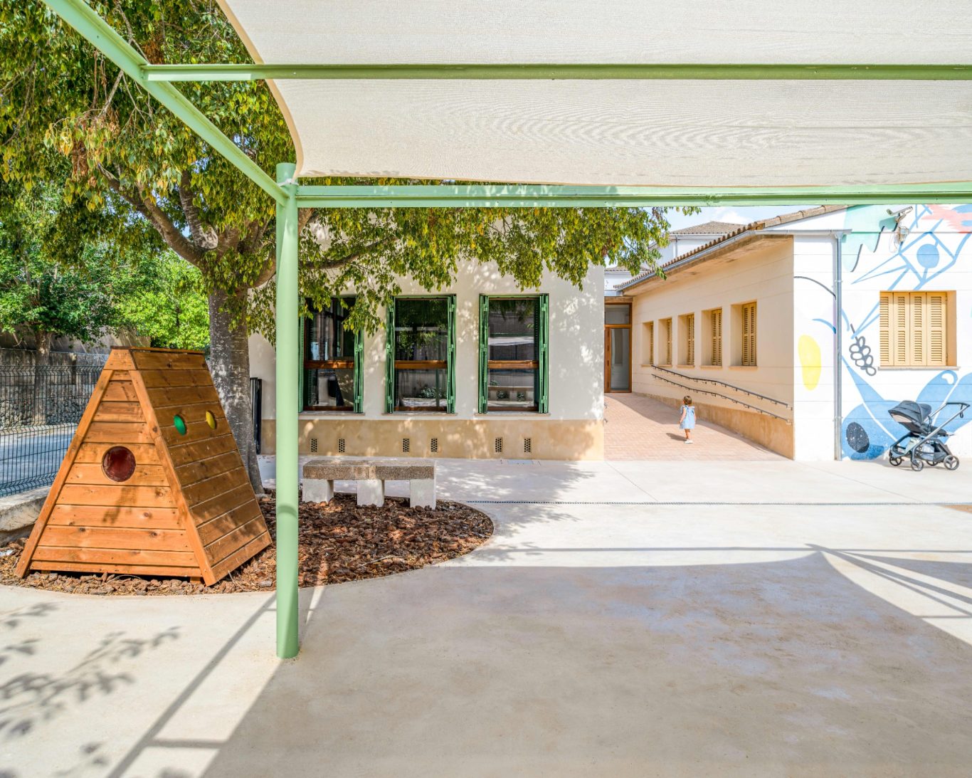 Refugi climàtic al pati d'una escoleta / Refugio climático en el patio de una guadería
