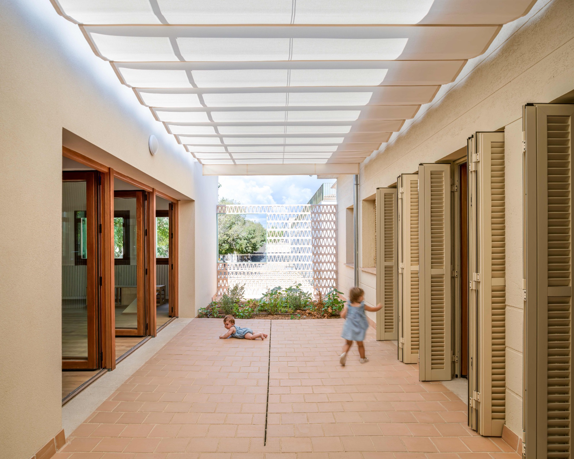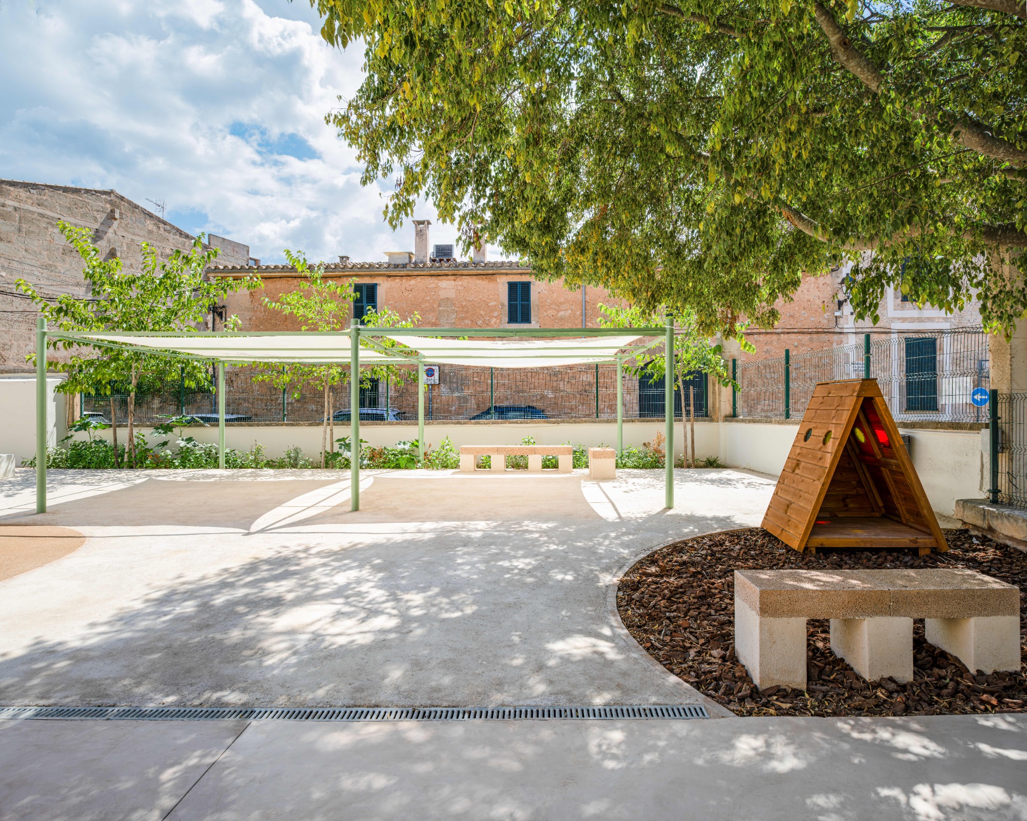 Refugi climàtic al pati d'una escoleta / Refugio climático en el patio de una guadería